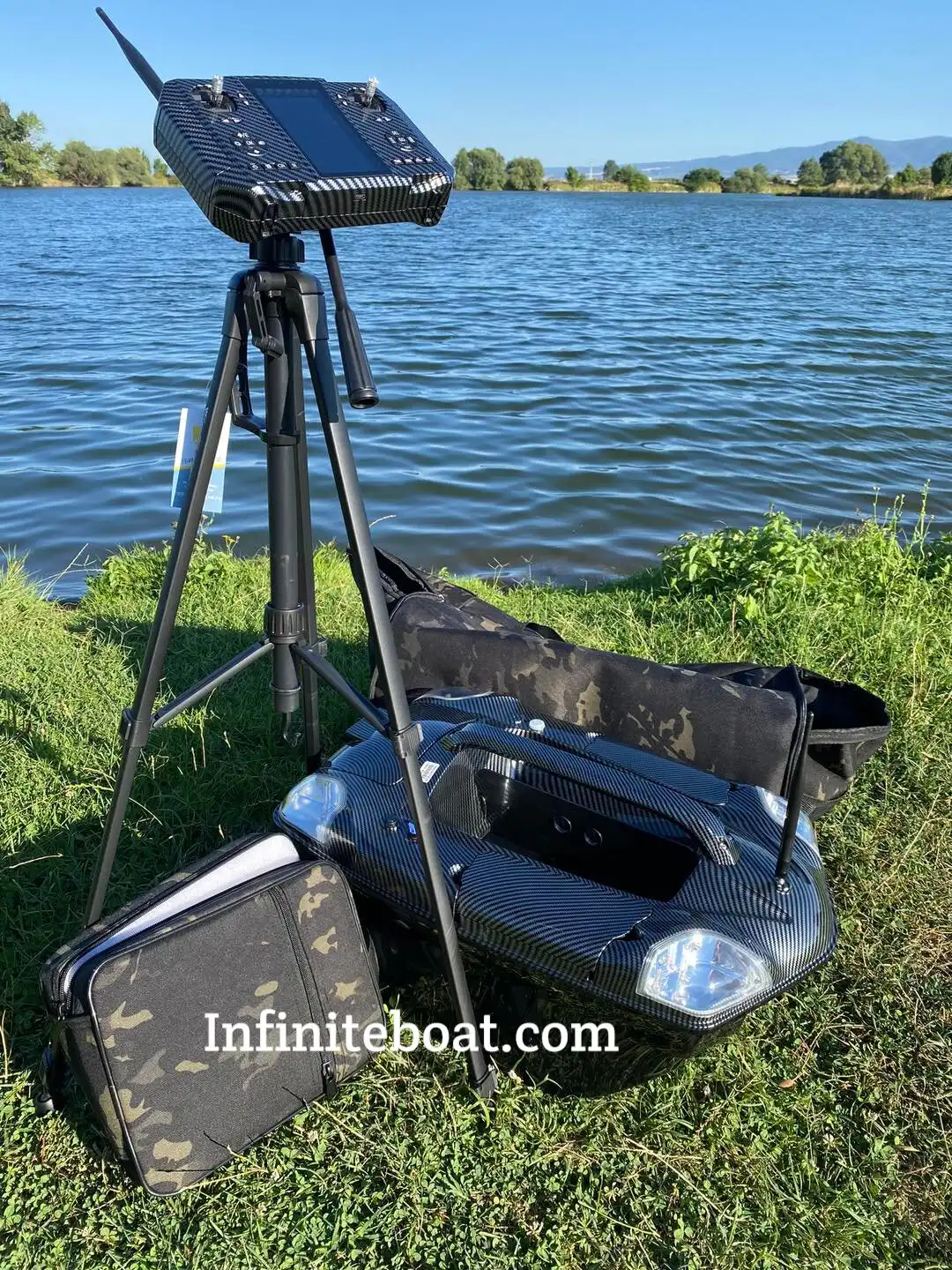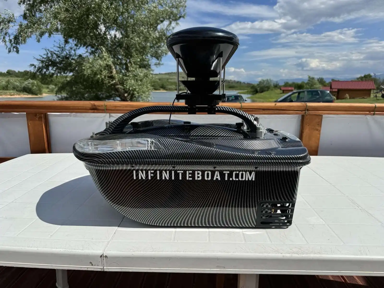 The boat is equipped with: ✔️Bag for the boat ✔️Remote control case ✔️Adapter for charging the batteries for 220V ✔️Cable type USB to type C for charging the remote control ✔️Stand for (DU) tripod ➕The boat comes with the latest software and hardware versions. ➕There is a mode where the boat goes to a point, opens the containers and returns home by itself. Arriving at the waypoint and HOME position, there is reverse thrust on the engines to hold the waypoint. ➕Containers are closed manually after opening. They are plastic with a magnetic opening. ➕ The boat weighs 9 kg with batteries.